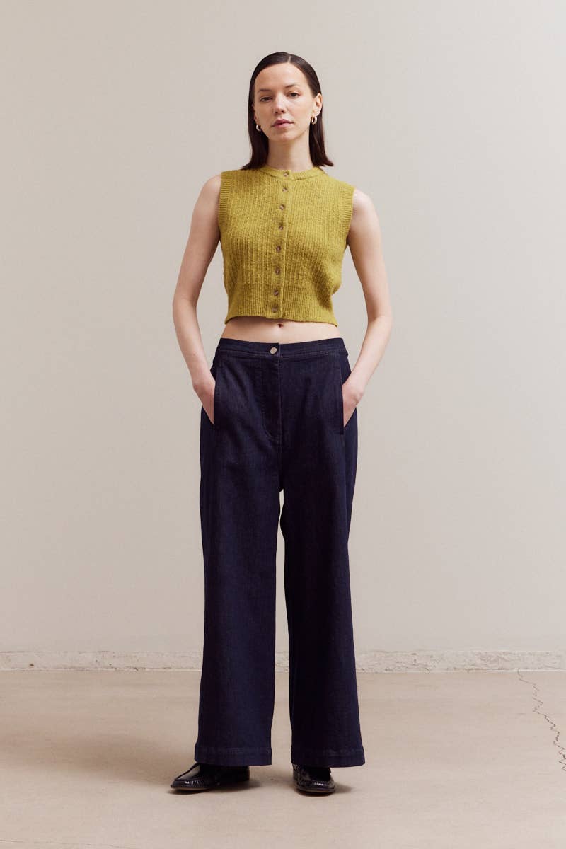 Citron - FITTED BUTTON UP SLEEVELESS TOP
