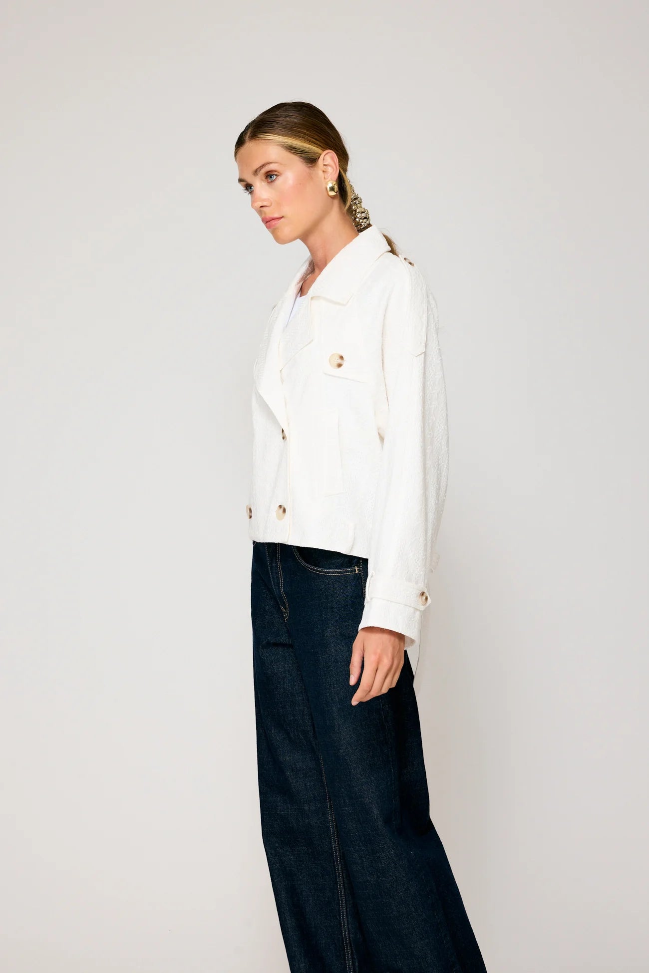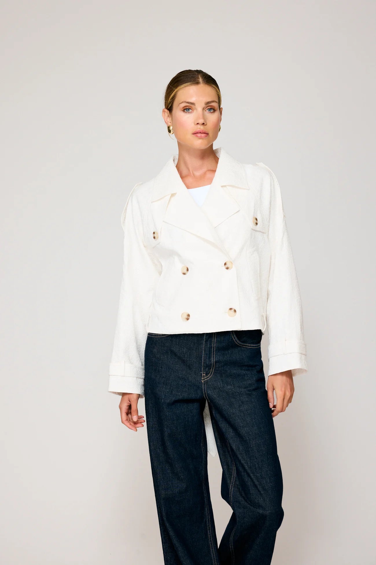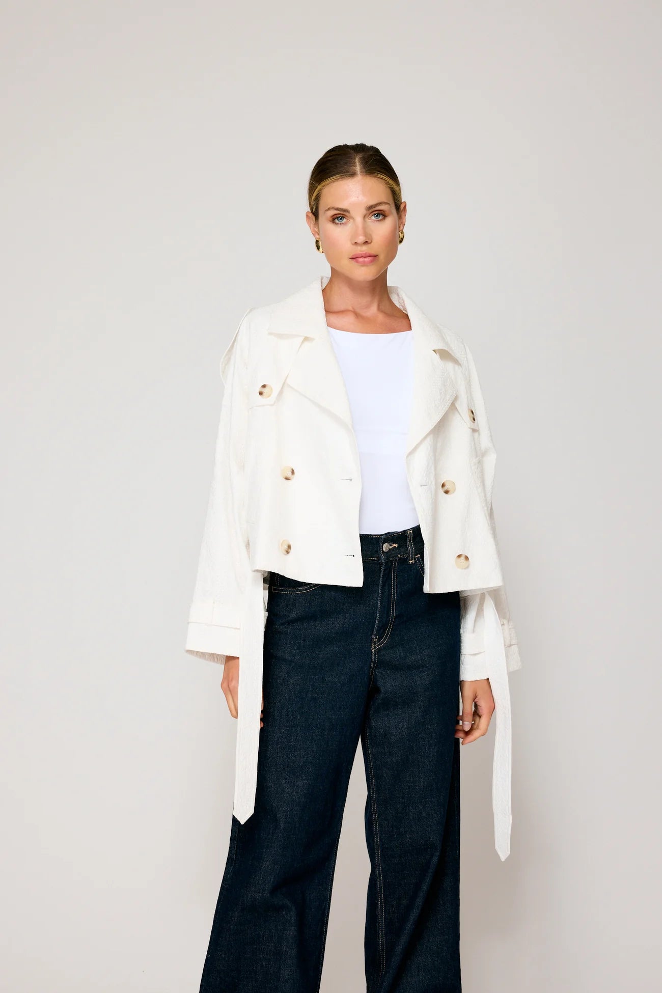 Step out in style with the Bendetta Crop Trench Jacket! This playful twist on a classic features mid-weight, non-stretch cotton lace for a delicate yet structured look. With shoulder epaulettes, a collared neck, and long raglan sleeves finished with button cuffs, it’s got plenty of charm. The double-breasted button placket and slant side pockets add both flair and function, while the fully lined interior keeps you comfy all day long. Perfect for when you want to turn heads with a stylish crop layer!