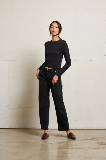 you loved the lisa tee—so we gave her sleeves. this long-sleeve version is made from recycled cotton with a body-skimming fit that hits right at your natural waist. full length, never cropped, and ready to be on heavy rotation.